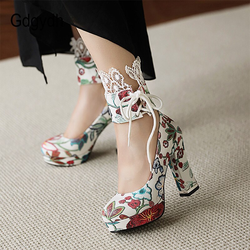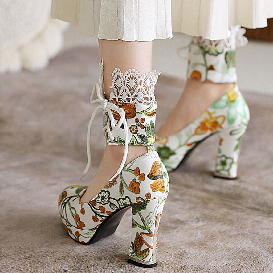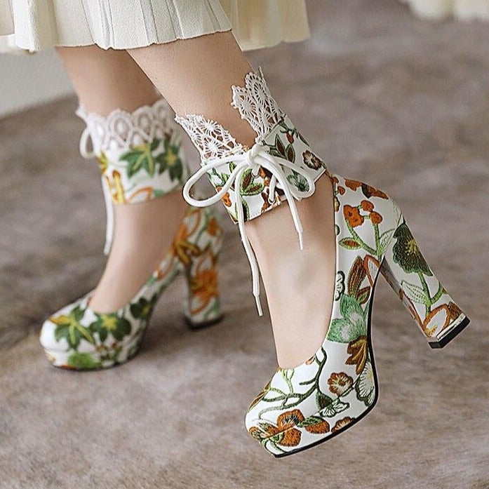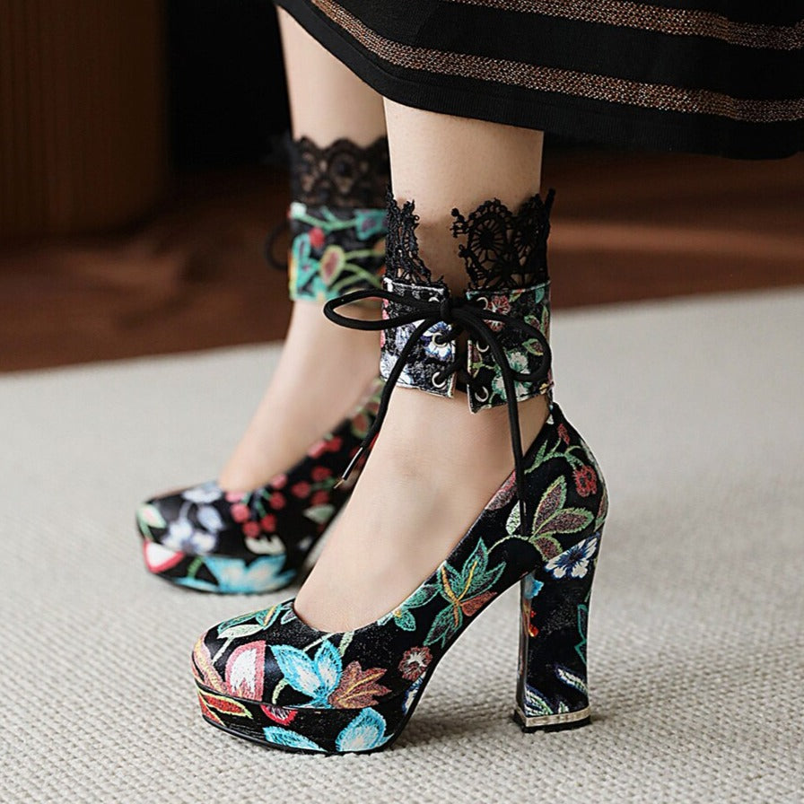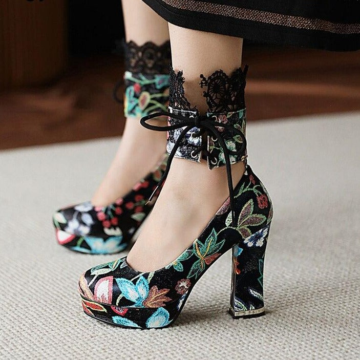 Des chaussures Gothiques à Talons Haut, ornées de motifs floraux romantiques et de dentelle